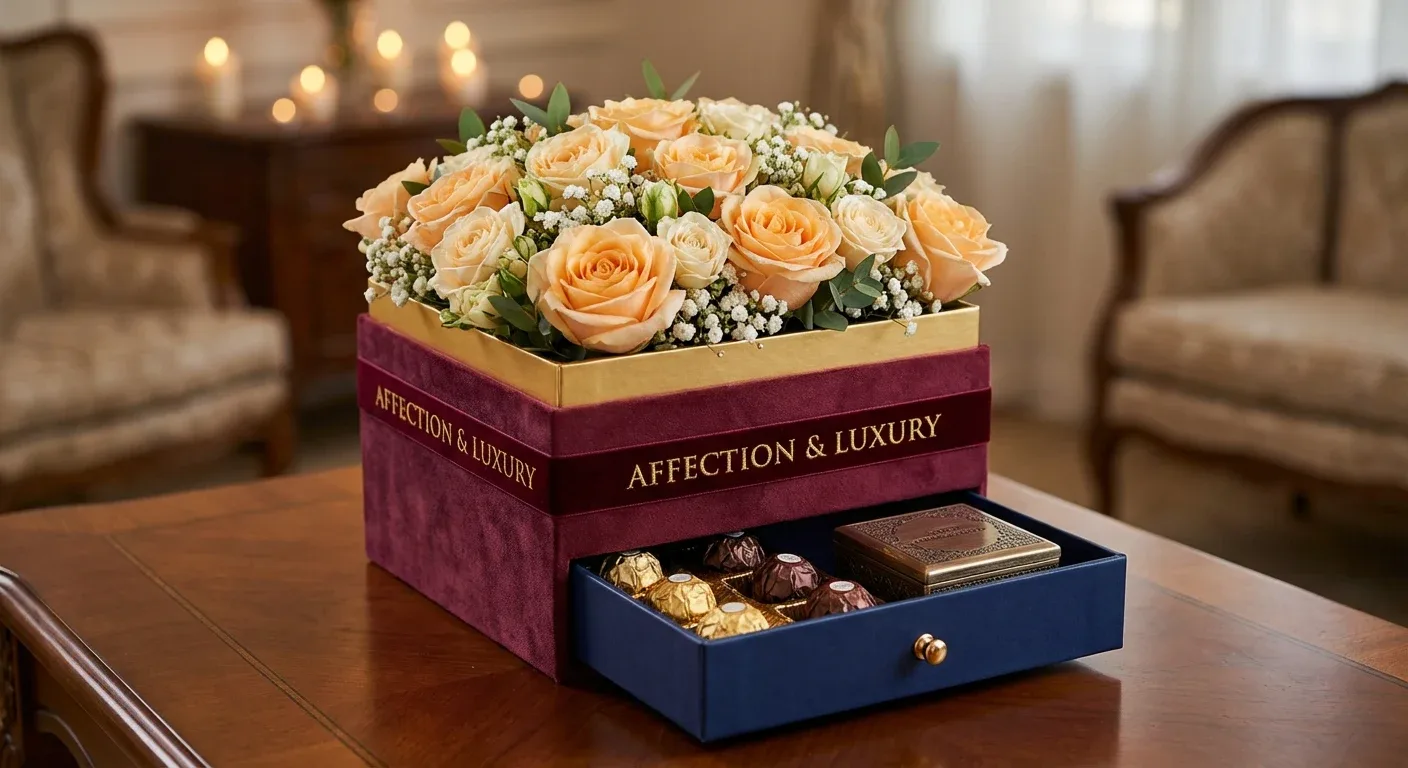 باکس گل چندطبقه: این مدلهای خلاقانه، در یک طبقه گلهای زیبا را جای دادهاند و در طبقه دیگر، فضایی برای قرار دادن هدیه اصلی شما مانند عطر، شال یا یک قطعه طلا دارند.
